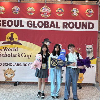 HIA G8 students Chloe Cheng, Alicia Tu, and Morris Chao, along with G7 new student Jeannie Cheng, participated in the World Scholar's Cup Global Round in Seoul, South Korea, along with fellow students from Korrnell Academy and achieved outstanding results! WSC is an international academic competition that includes debate, writing, knowledge challenges, and team challenges, showcasing participants' academic skills and knowledge through individual and team events.